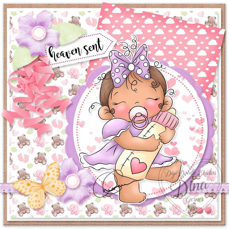 Baby Cassie is an original Baby/Nursery inspired illustration created for cardmaking, scrapbooking, paper crafting, and coloring!