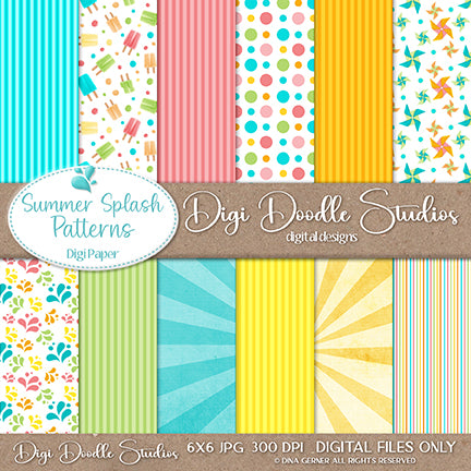 "Summer Splash Patterns" 6x6 Digi Papers make a wonderful background addition to our Digi Doodle Stamps images for your card making and paper crafting projects.