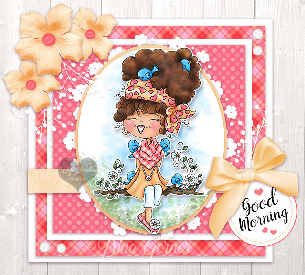 Meet Birdy! Yes she is the neighborhood bird lady! Isn't she just full of sunshine? She is part of our "Curly Girl" collection.