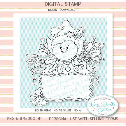 Chipper Tweets Winter Christmas Tag Digi Stamp