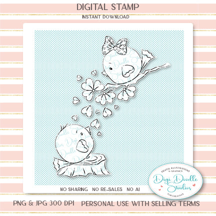 Little Love Birds are an original Valentine inspired illustration created for cardmaking, scrapbooking, paper crafting, and coloring!
