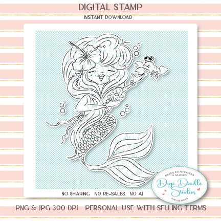 Nixie is an original sea/ocean/beach  inspired illustration created for cardmaking, scrapbooking, paper crafting, and coloring!