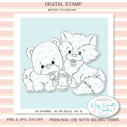 Paco & Ferris is an original Baby/Nursery inspired illustration created for cardmaking, scrapbooking, paper crafting, and coloring!