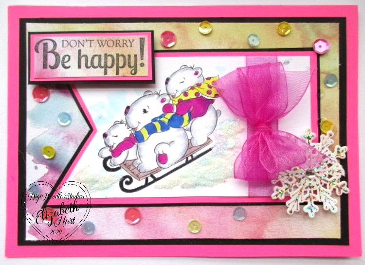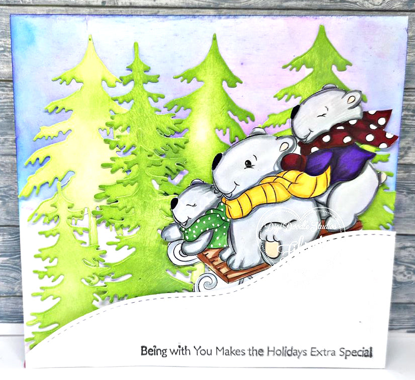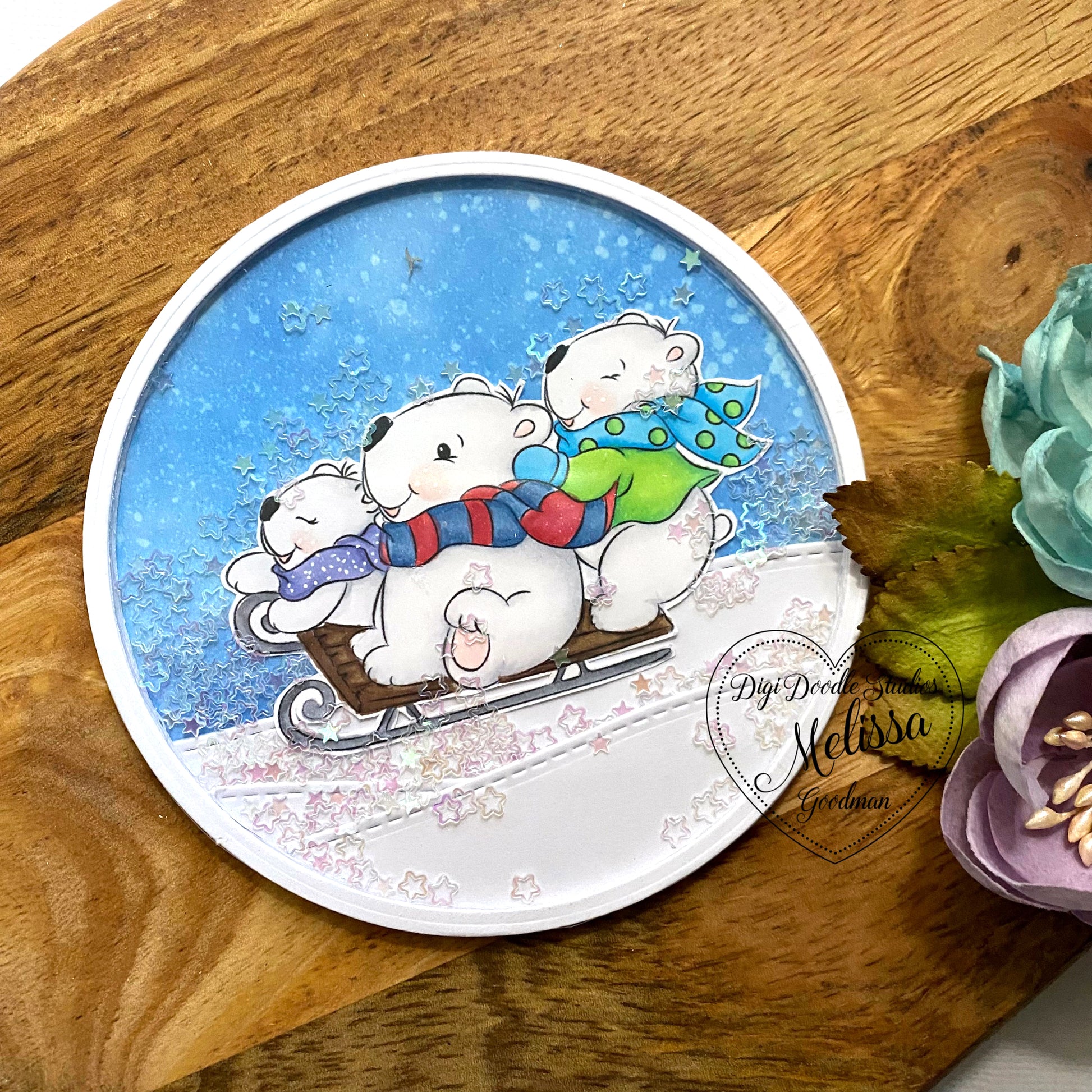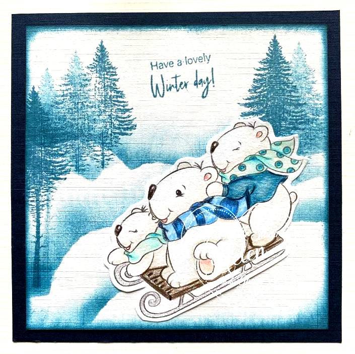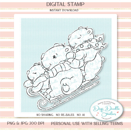 Beary Fun Sleigh Ride is an original Winter Critter inspired illustration created for cardmaking, scrapbooking, paper crafting, and coloring!