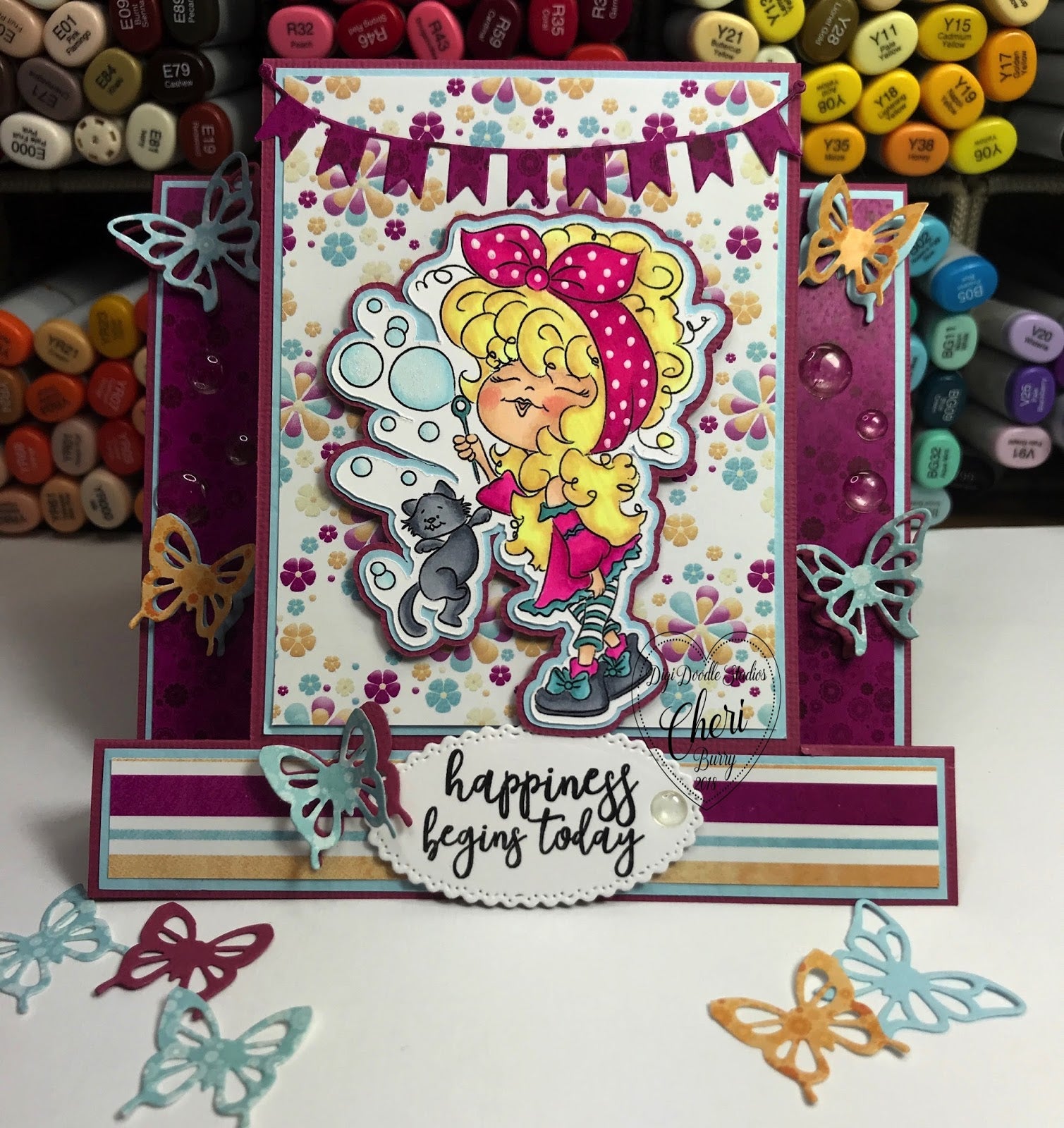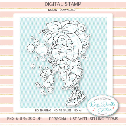 Blowing Bubbles is an original fun-loving inspired illustration created for cardmaking, scrapbooking, paper crafting, and coloring!