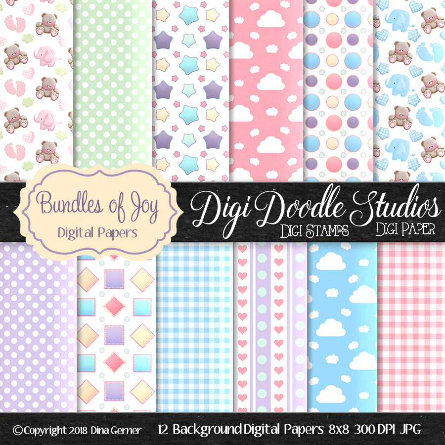 "Bundles of Joy Background Paper" is a color baby inspired collection of digital papers that would make a wonderful background addition to our Digi Doodle Stamps images for your card making and paper crafting projects.