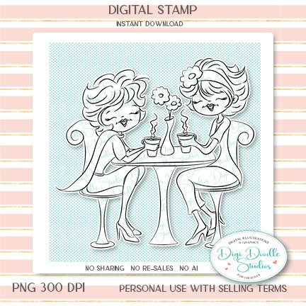 Coffee Confidential is an original Friendship inspired illustration created for cardmaking, scrapbooking, paper crafting, and coloring!