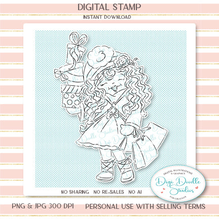 Mallory is an original Christmas/Winter inspired illustration created for cardmaking, scrapbooking, paper crafting, and coloring!