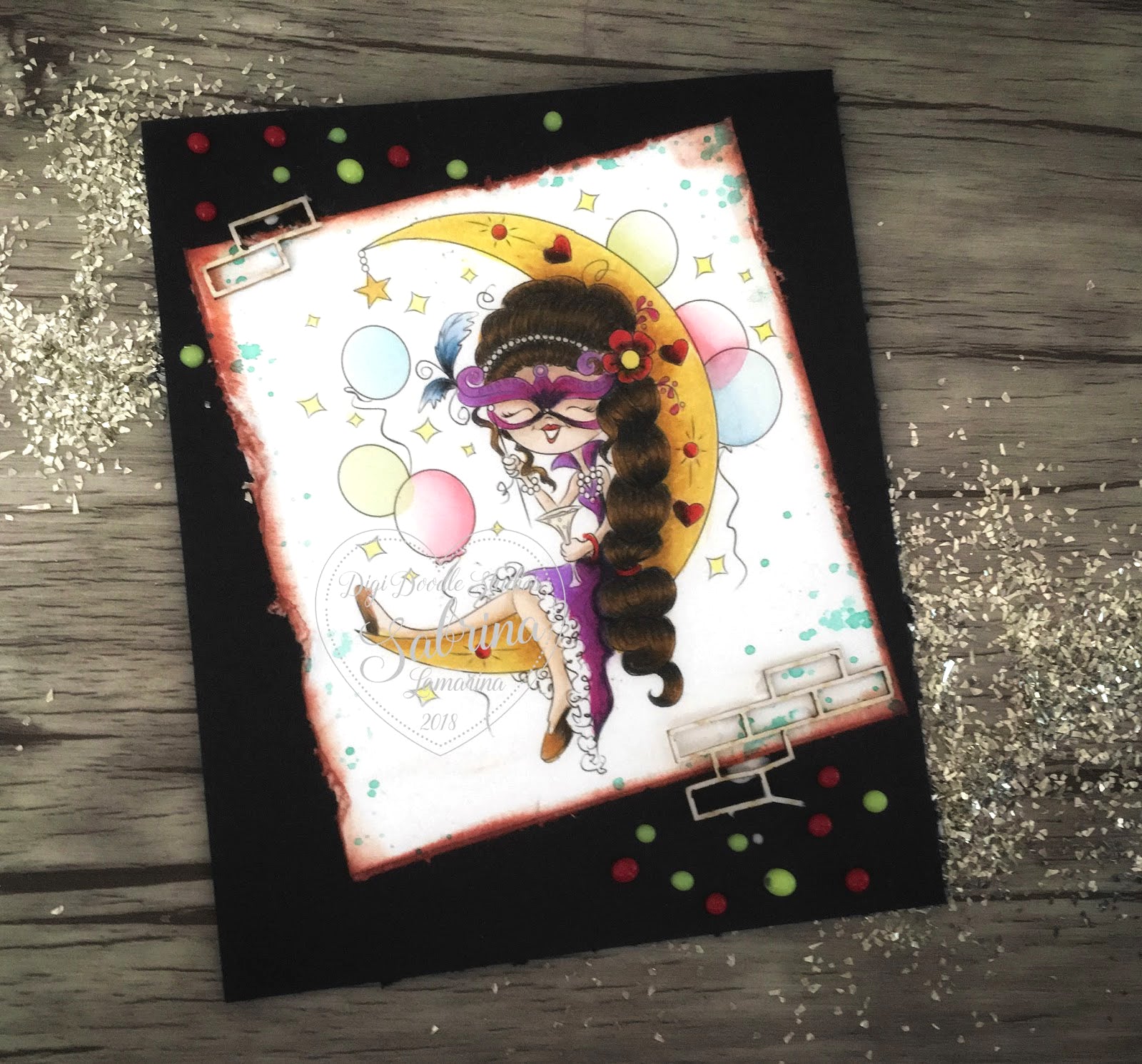 Selena is an original New Year/Masquerade Ball inspired illustration created for cardmaking, scrapbooking, paper crafting, and coloring!