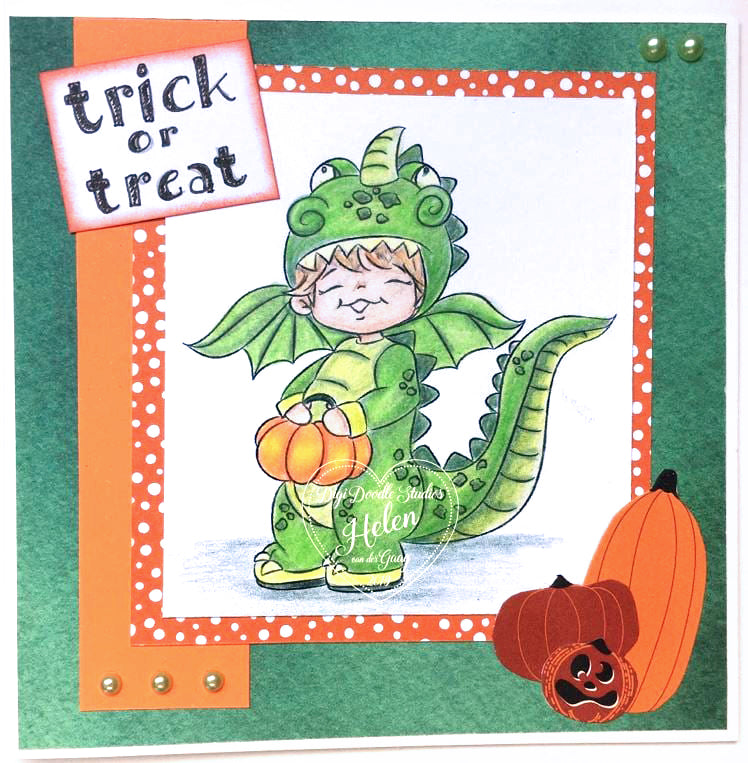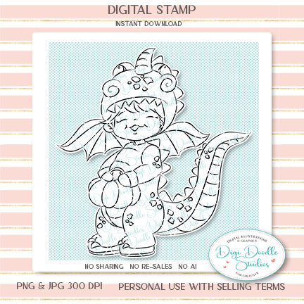 Dino Dean is an original Halloween inspired illustration created for cardmaking, scrapbooking, paper crafting, and coloring!