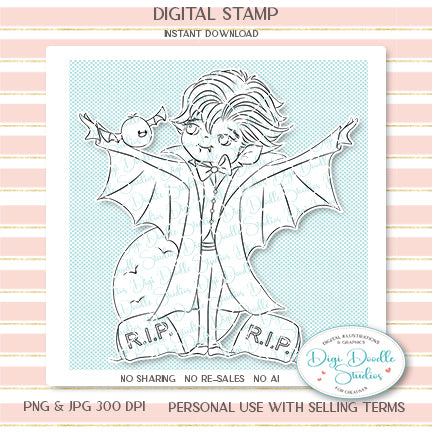 Dracula is an original Halloween/Autumn inspired illustration created for cardmaking, scrapbooking, paper crafting, and coloring!