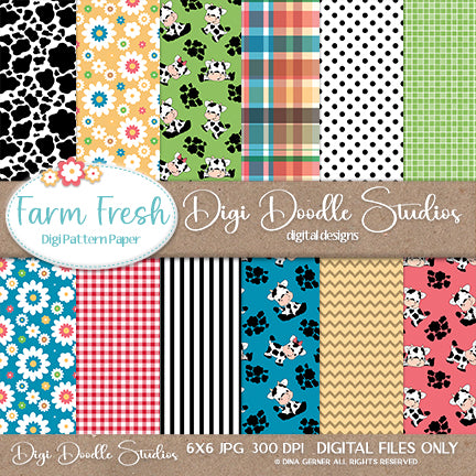 Our "Farm Fresh" Digi Paper Pack is a brightly colored Farm inspired pack of digital papers that would make a wonderful background addition to our Digital Doodle Stamps images for your card making and paper crafting projects.