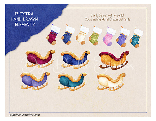 With 162 hand drawn illustrations to choose from, it will be easy to combine elements for Holiday occasions and Winter projects. You will have so much fun discovering the endless possibilities.
