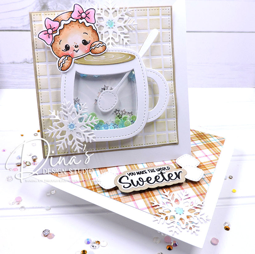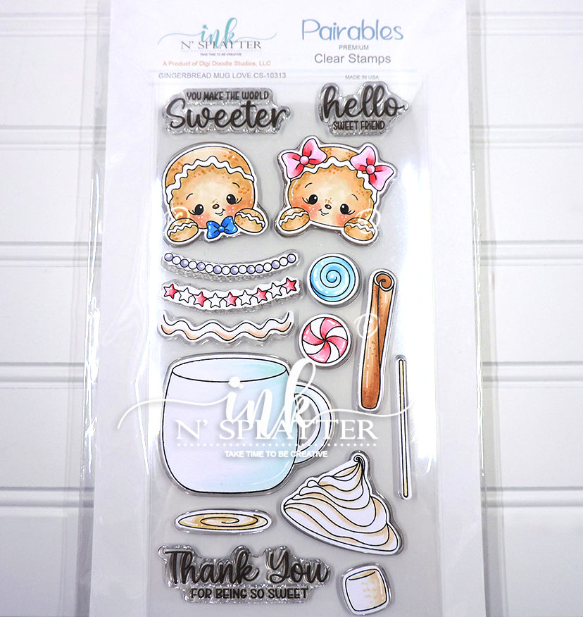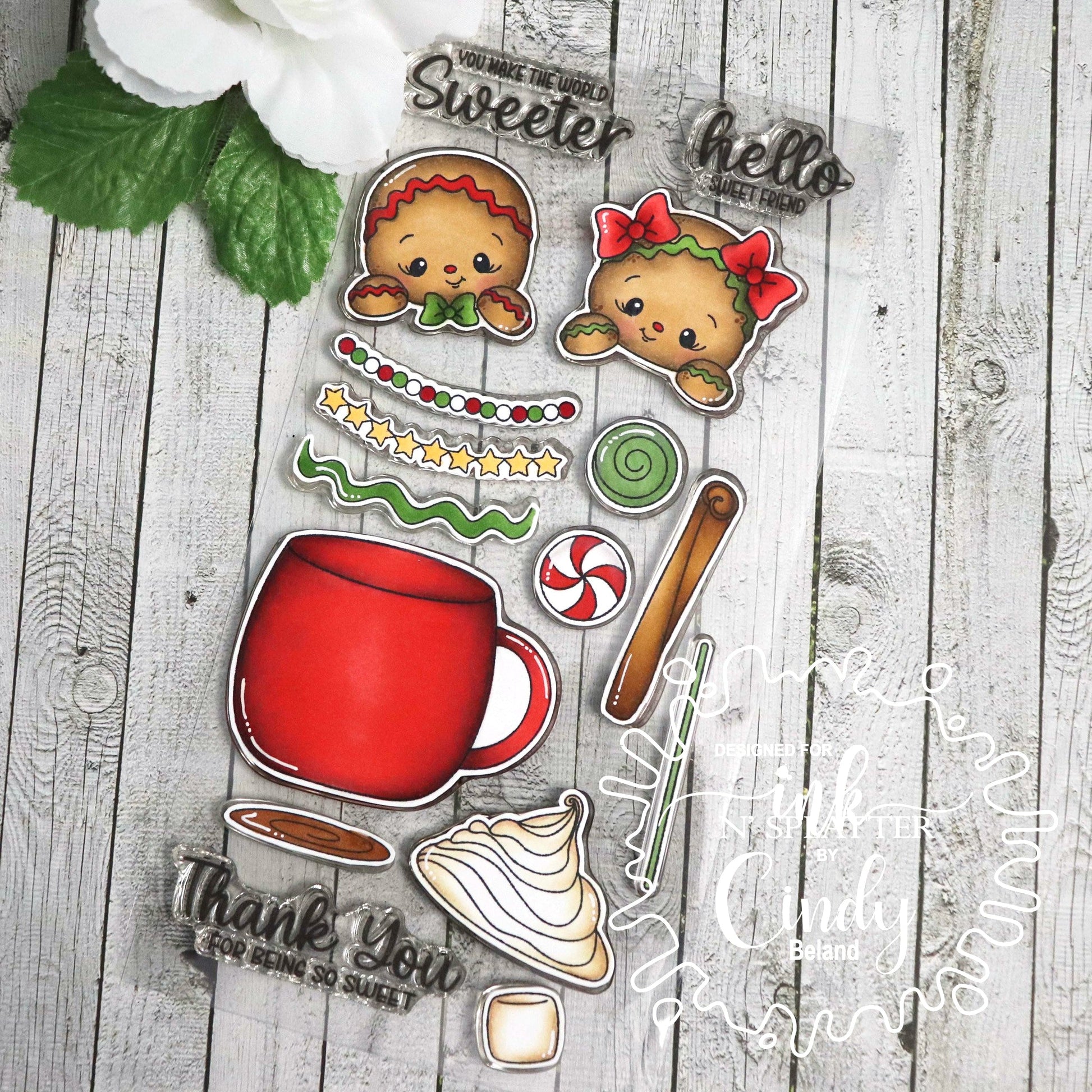 "Gingerbread Mug Love" is sure to bring big smiles to your Holidays! This clear stamp set features a couple of adorable peeking Gingerbread, a cute little mug with accessories, and a few sentiments to help create a fabulous project with Holiday theme or anytime of the year.
