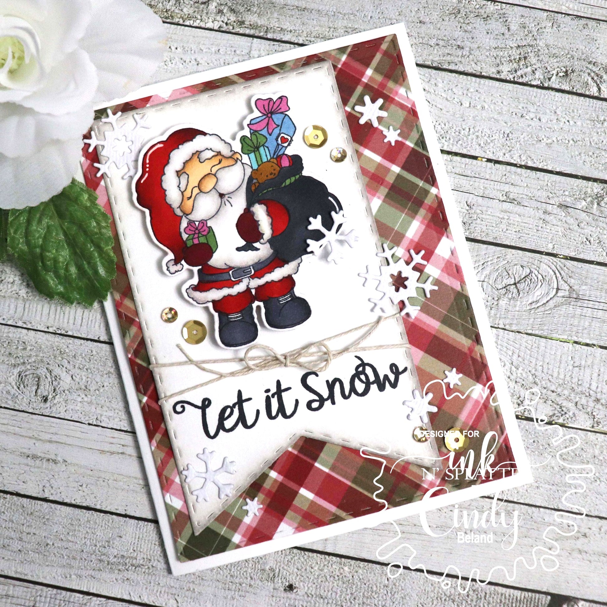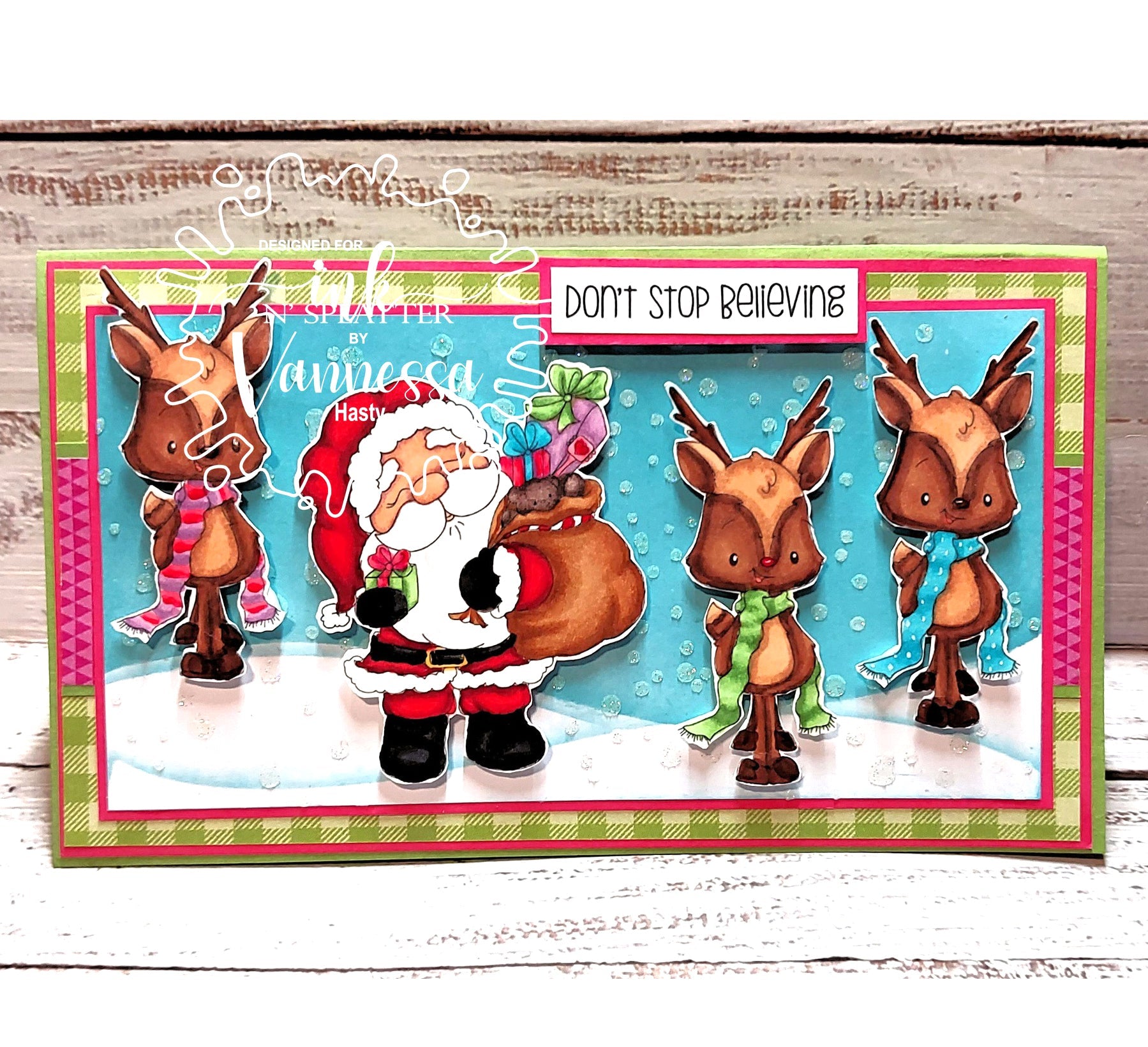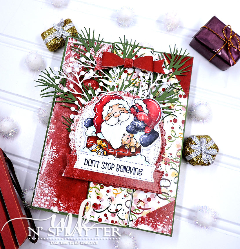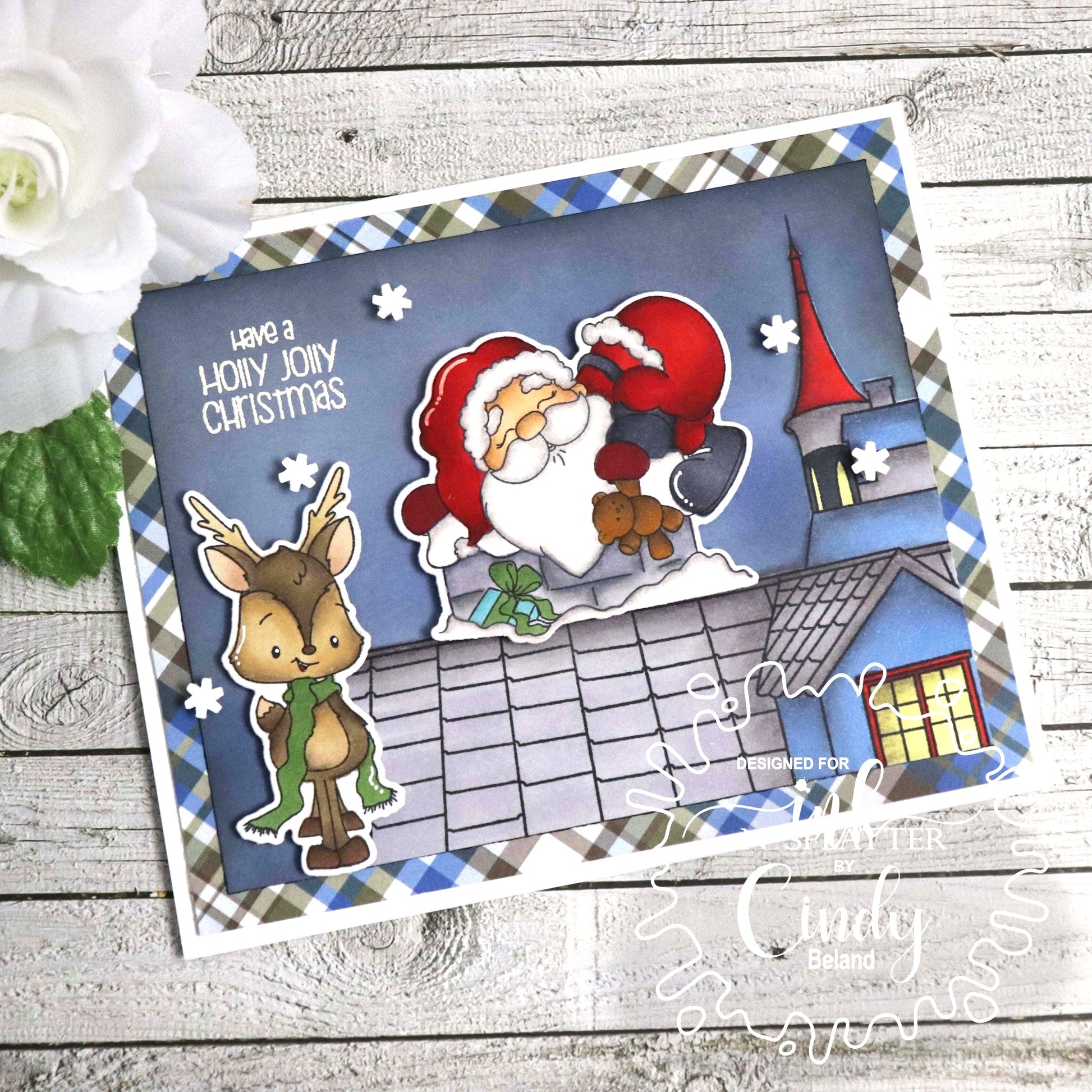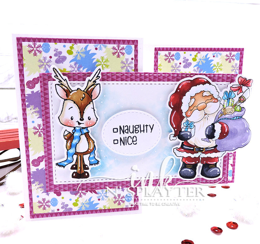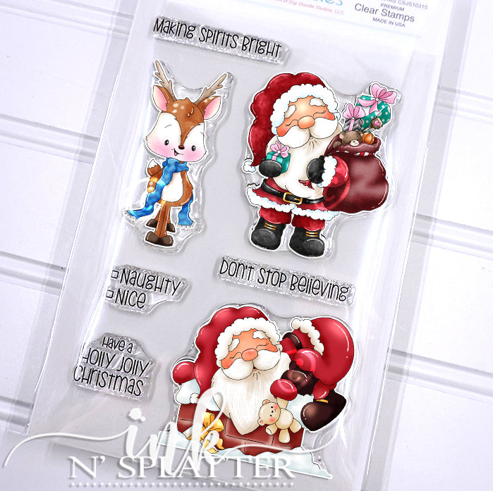 "Jolly Santas" are sure to bring big smiles to your Holidays! This clear stamp set features a couple of adorable happy Santas,an adorable Reindeer, and a few sentiments to help create a fabulous project with Holiday theme or anytime of the year.