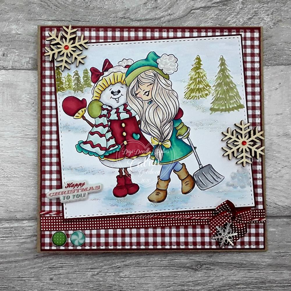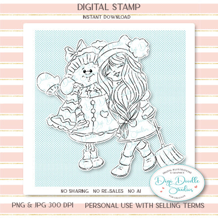 "Lucia & Icelyn" are an original Winter/Snowman inspired illustration created for cardmaking, scrapbooking, paper crafting, and coloring!