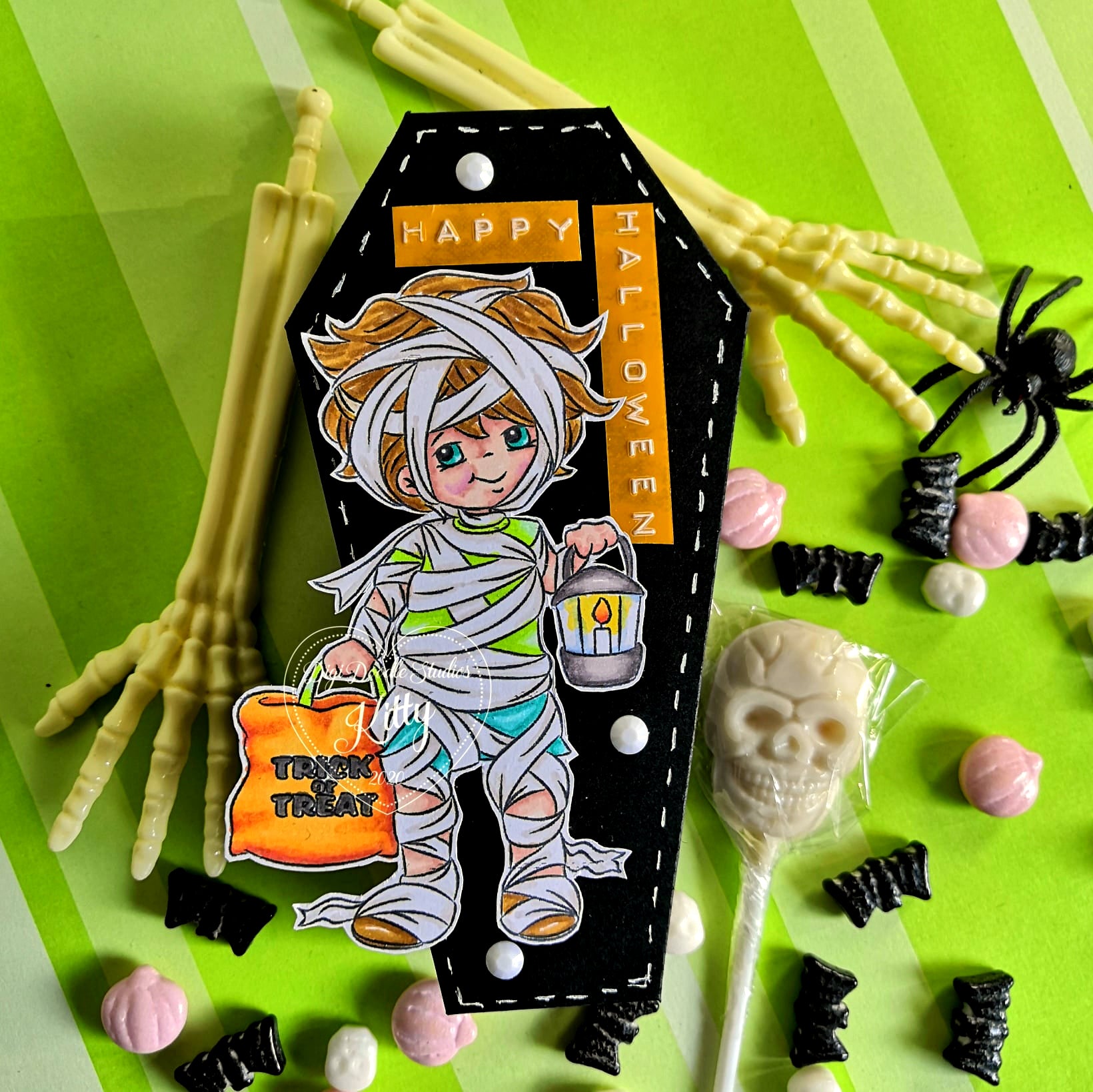 Manny Mummy is an original Halloween inspired illustration created for cardmaking, scrapbooking, paper crafting, and coloring!