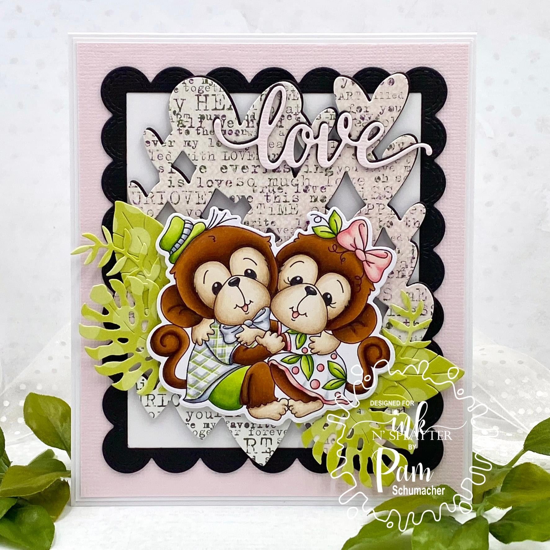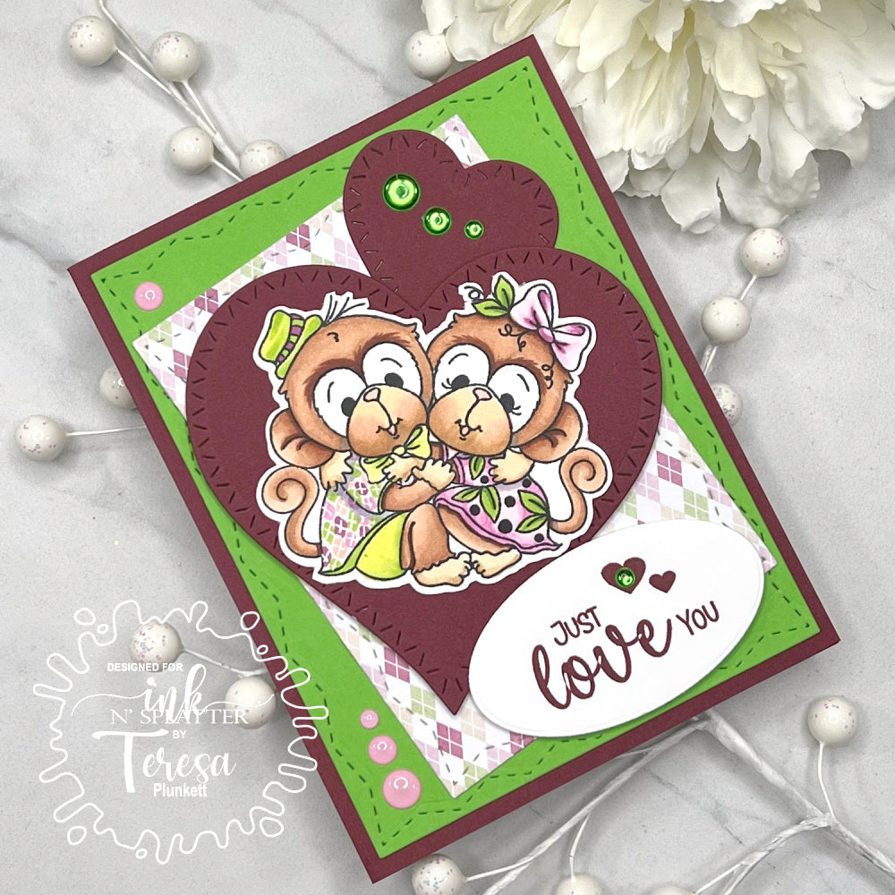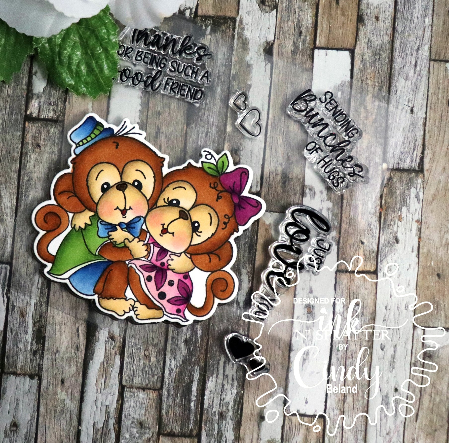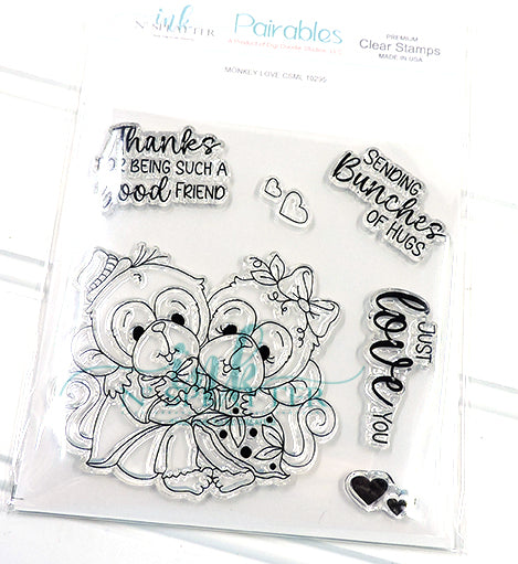 "Monkey Love" are an adorable Love & Friendship & Valentine inspired High-Quality Clear Polymer Stamp Set made in the USA.