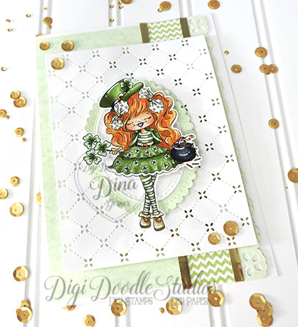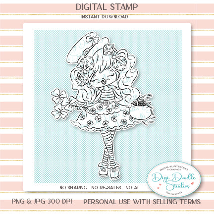 Patty is an original St. Patrick's Day inspired illustration created for card making, scrapbooking, paper crafting, and coloring!