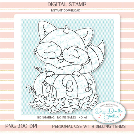 "Ricki Raccoon & Pumpkin"! This little critter just loves Fall! This sweet image a reminder of cooler temps, pumpkins, and Fall festivals. Our Ricki Raccoon & Pumpkin Digi Stamp makes a wonderful edition to our Autumn Collections.
