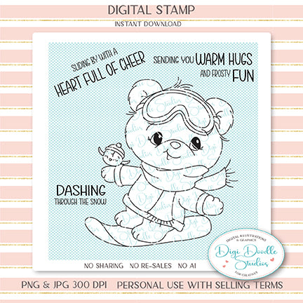 This is "Zoomer Bear & Tilly" This adorable Bear his companion bird is an original Winter/Holiday inspired illustration created for card making, scrapbooking, paper crafting, and coloring!